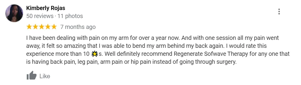 Disclaimer: Procedures and treatments performed by Regenerate SoftWave Therapy have an inherent success (and failure) rate. Reviews, testimonials and content on this site should not be interpreted as a statement of efficacy of procedures and treatments performed by Regenerate SoftWave Therapy for anyone else.